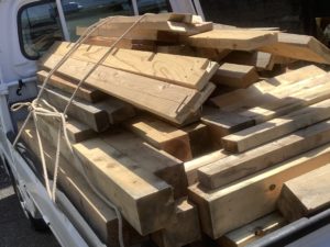 HOME > ブログ > ブログ 全て たくさん‼️ 2025/09/06 いつもお世話になっている S建設さんから 大量の建築廃材を いただいて来ました 柱材が一杯です‼️ 冬季、工房の薪ストーブ用になります -ブログ, 全て