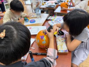 神納小学校3年生のみなさんにかぼちゃペイントをしていただきました☺